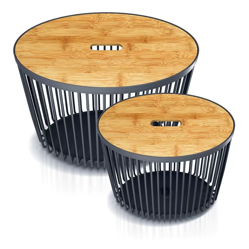 Σετ 2 καθολικά οβάλ καλάθια με καπάκια μπαμπού