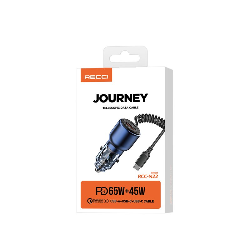 Charge smarter on the road with the RECCI RCC-N22 – a high-performance dual-port car charger designed for ultra-fast charging and versatile compatibility.