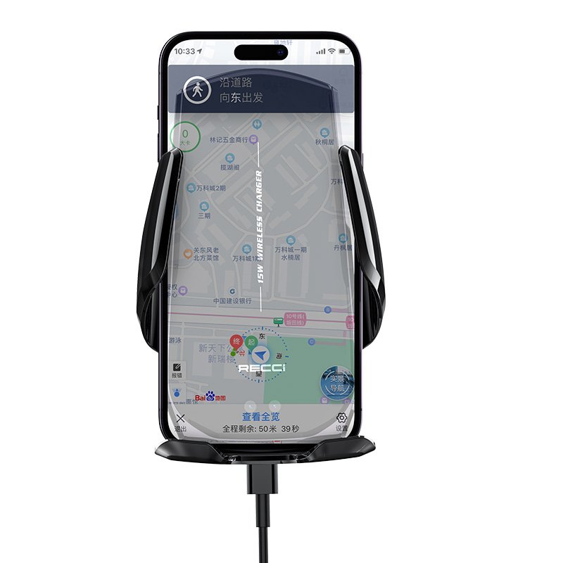 RECCI RHO-C27 – Wireless Charging Car Holder 15W – BLACK