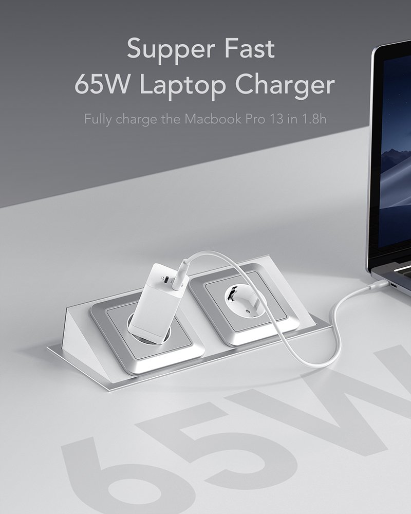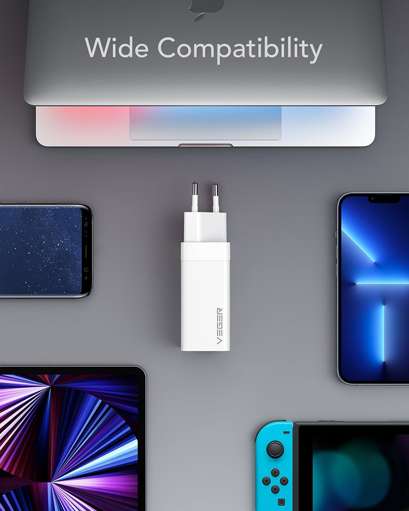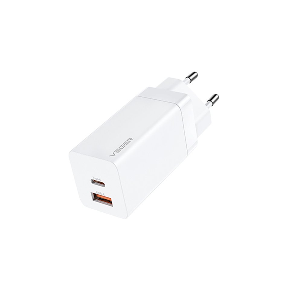 Ο φορτιστής της Veger σας προσφέρει γρήγορη φόρτιση, με μία θύρα Type-C PD με ισχύ 65W και μια θύρα USB-A, που υποστηρίζει Quick Charge 3.0 18W. Είναι συμπαγές με μοναδική, ελαφριά και μινιμαλιστική εμφάνιση, η οποία το καθιστά εξαιρετικά φορητό και κατάλληλο για τα ταξίδια σας.