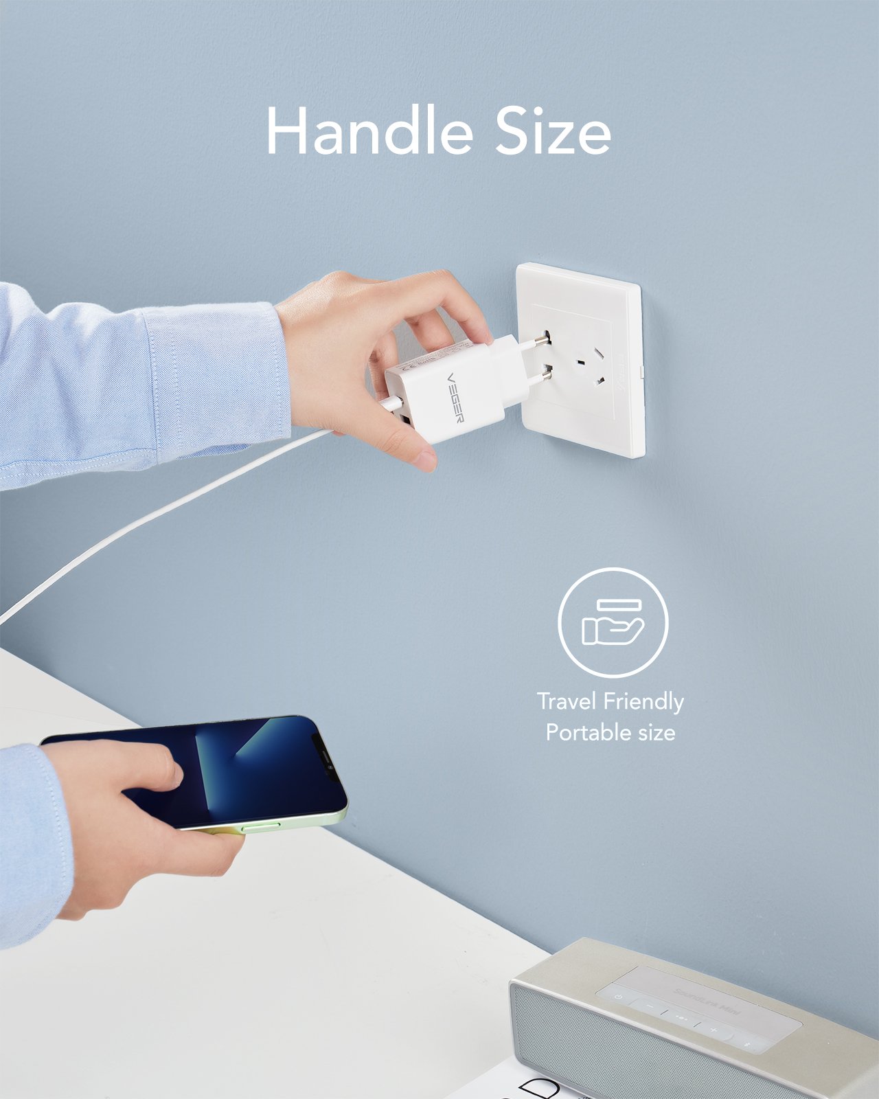 Ο φορτιστής της Veger σας προσφέρει γρήγορη φόρτιση, είναι εξοπλισμένο με μία θύρα Type-C PD 3.0 30W και μία θύρα USB-A QC3.0 18W, φορτίζοντας αποτελεσματικά τις συσκευές σας σε πλήρη ταχύτητα. Είναι συμπαγές και φορητό, χάρη στο μικρό του μέγεθος που το καθιστά ελαφρύ και βολικό.