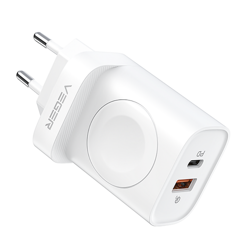 Ο πολυλειτουγικός φορτιστής της Veger διαθέτει σχεδίαση 3 σε 1 και είναι εξοπλισμένο με έναν ασύρματο φορτιστή Apple Watch, μία θύρα Type-C, μία USB-A, και όλα αυτά με μία απλή σύνδεση στον τοίχο, ώστε να σας απαλλάξει από τους πολλούς φορτιστές!